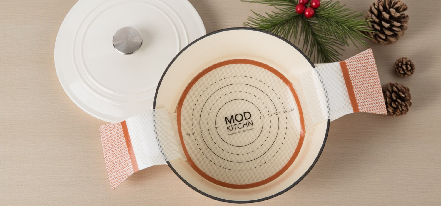 I bake a lot of sourdough loaves each week. Most are a batard shape, so I was excited to see this large oval shaped bread sling. The others I have seen are smaller so not big enough to fully protect my loaves. I like not having to waste parchment paper even though I do use them as long as possible. In addition, using a silicone sling with handles does make for a safer transfer to the Dutch oven compared to using a sheet of parchment. The other advantage is that the bottom of the loaf didn’t get hard or burnt, as often happens in a Dutch oven. It perfectly fits my 12-inch oval Dutch oven.After you remove the pot from the oven, be aware that the silicone mat will be hot as well so keep your oven gloves on while you remove the sling. Or just simply remove the loaf, to place on a cooling rack and leave the sling in the pan to cool.I like that these slings were shipped in a protective seal. They look and feel like my best silicone cooking mats. A great feature is the wide ends of the handles, creating a more comfortable and secure grip. Thoughtfully included is a band to hold the rolled-up sling, making it easy to store in a drawer. The band is similar to the slap bracelets that all the kids love. I’m going to get a round sling too, as I do occasionally also bake round loaves in a round Dutch oven – often at the same time I am baking an oval loaf.